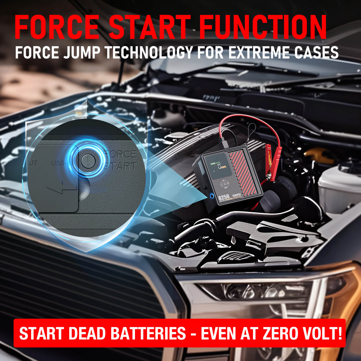 Lo starter jumper ha la funzione di detective intelligente. Quando non funziona o è stata completata la ricarica, entrerà automaticamente in modalità di sospensione per risparmiare energia.